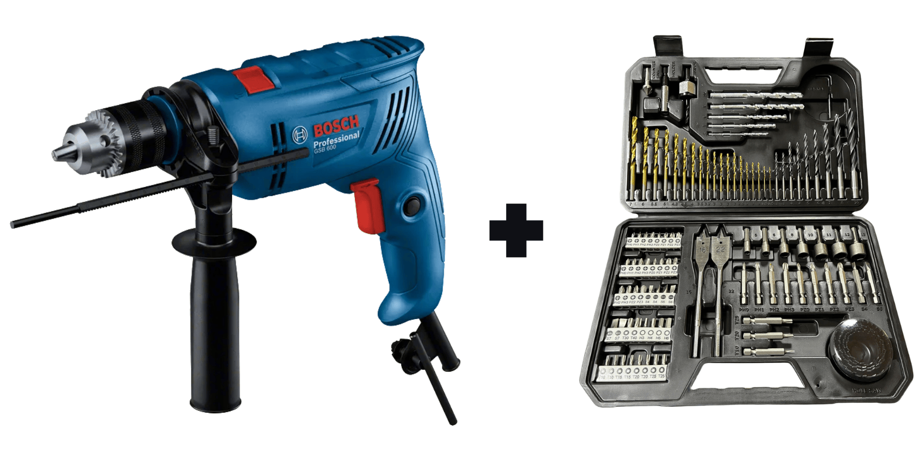 Bosch GSB 600 Darbeli Matkap + Bosch 103 Parça Aksesuar Seti