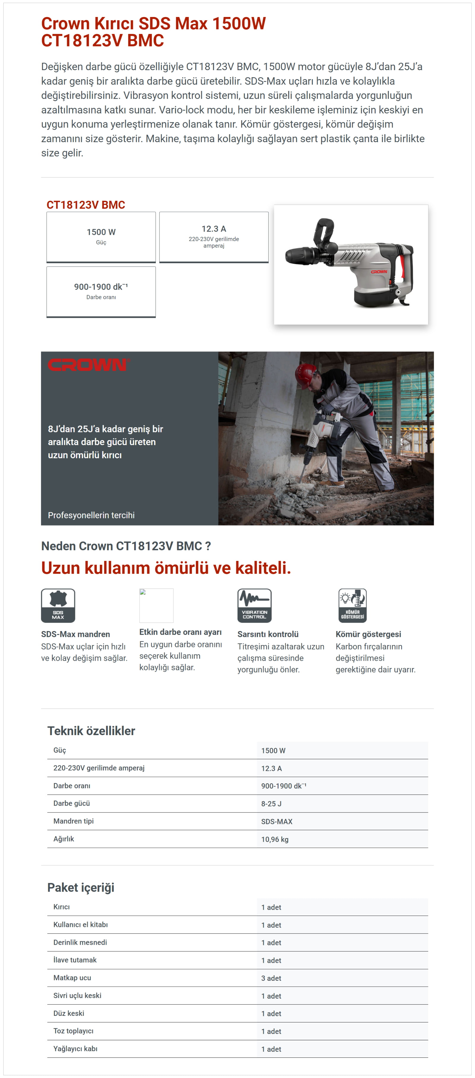 Etiketler: Crown, Kırıcı-Delici, SDS-Max, 1500W, fiyat/performans