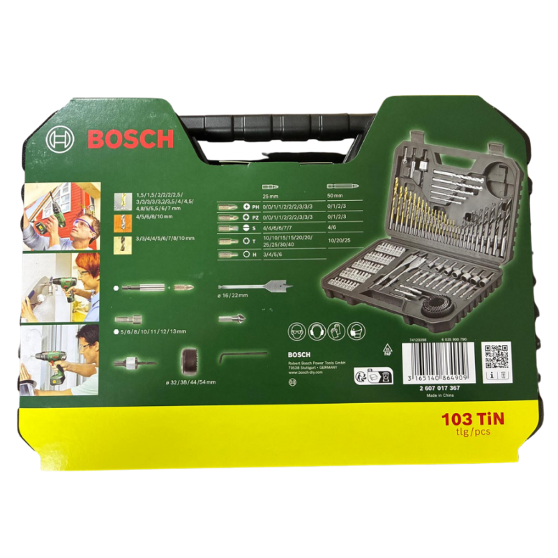 Etiketler: Bosch, GSB 600, darbeli matkap, matkap, beton delme, ahşap delme, metal delme, aksesuar seti, tornavida seti, 103 parça aksesuar seti