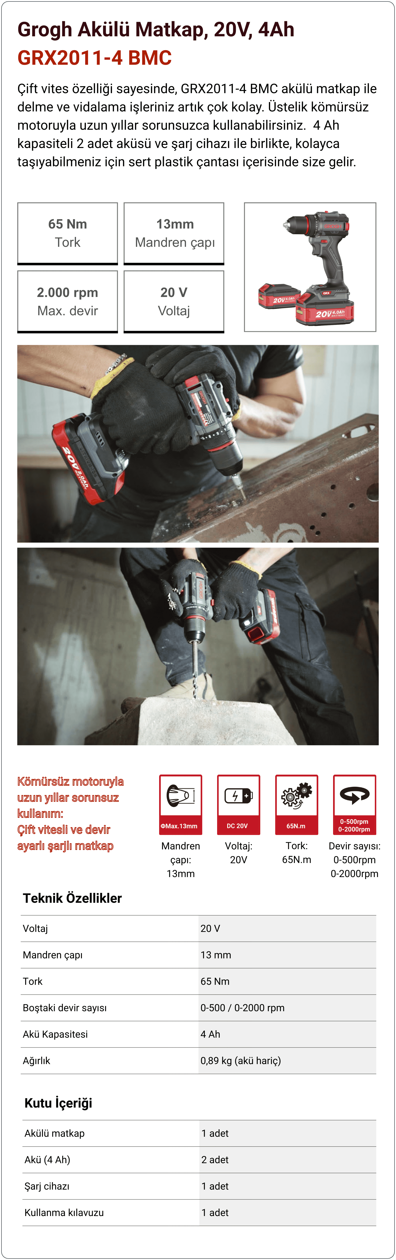 Etiketler: grogh, akülü vidalama, şarjlı vidalama, akülü matkap, şarjlı matkap, 20V akülü vidalama, kömürsüz motorlu akülü vidalama